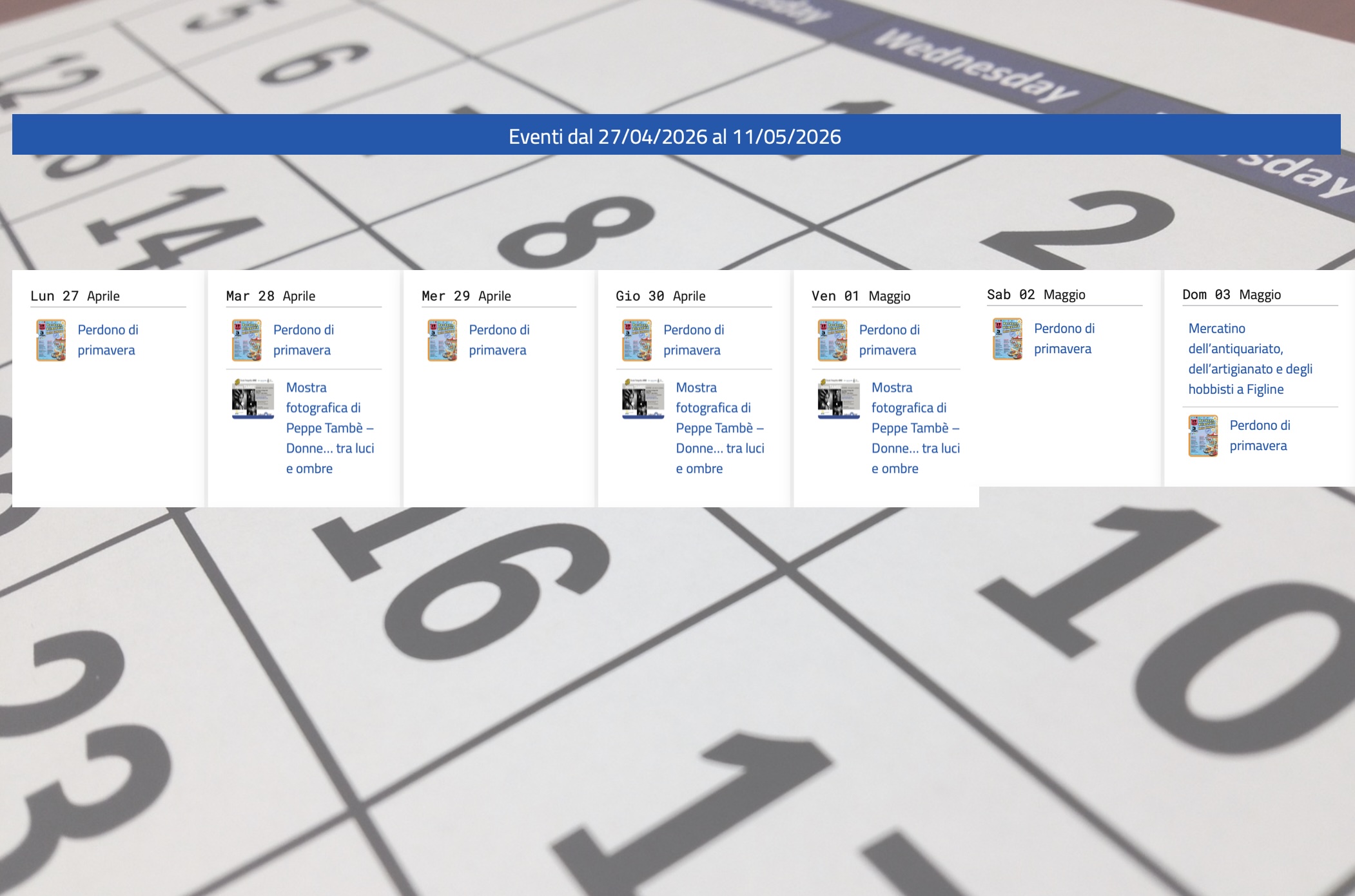 Ecco tutti gli eventi previsti