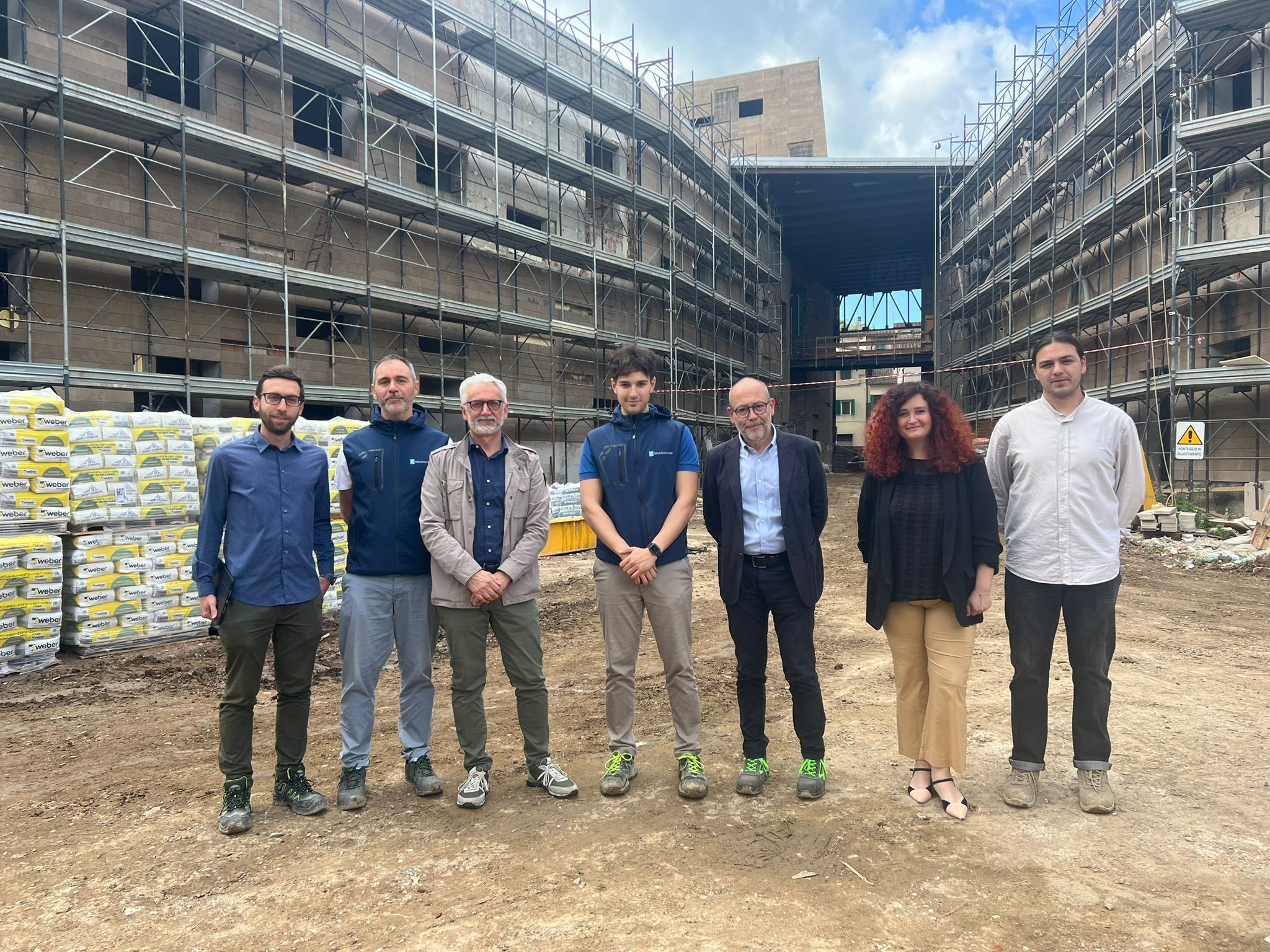 IN FOTO: architetto Leonardo Bernini (assistente direttore tecnico di cantiere); ingegnere Renato Di Giandomenico (direttore tecnico); Roberto Calussi, dirigente area tecnica comunale; ingegnere Simone Tognaccini (collaboratore assistenza di direzione lavori); architetto Pier Matteo Fagnoni, direttore lavori e progettista; sindaca del Comune di Figline e Incisa Valdarno; ispettore cantiere (per direzione lavori) Claudio Cassinelli.