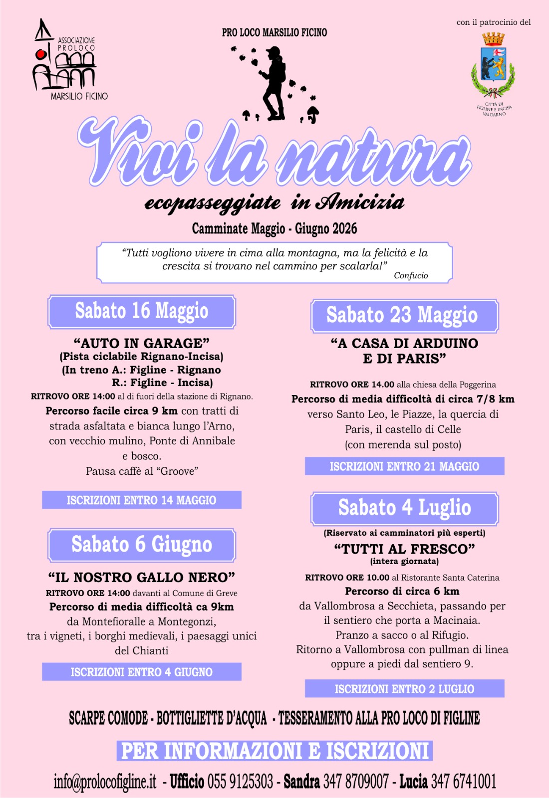 L'iscrizione è obbligatoria (entro il 14 Maggio), scrivendo a info@prolocofigline.it o chiamando i numeri 055 9125303 - 347 8709007 - 347 6741001.